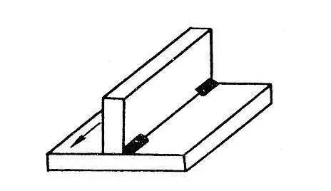 一般角焊缝要求焊缝间隙尽量小。点固一般在板材背面进行,点固长度在10mm左右。一般点固两到三点即可,如图所示:
